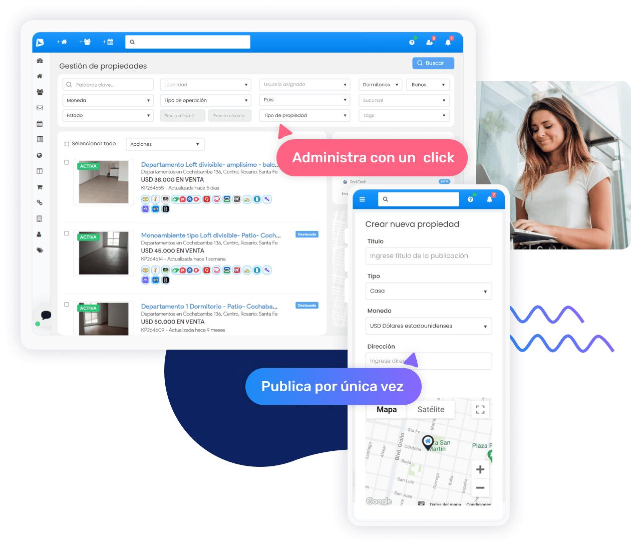 Manten al dia tus propiedades en más de 30 portales con un solo click.