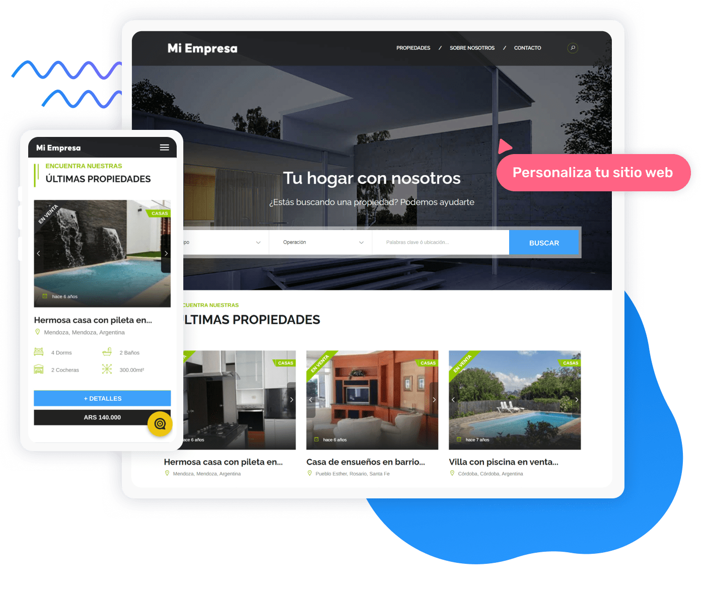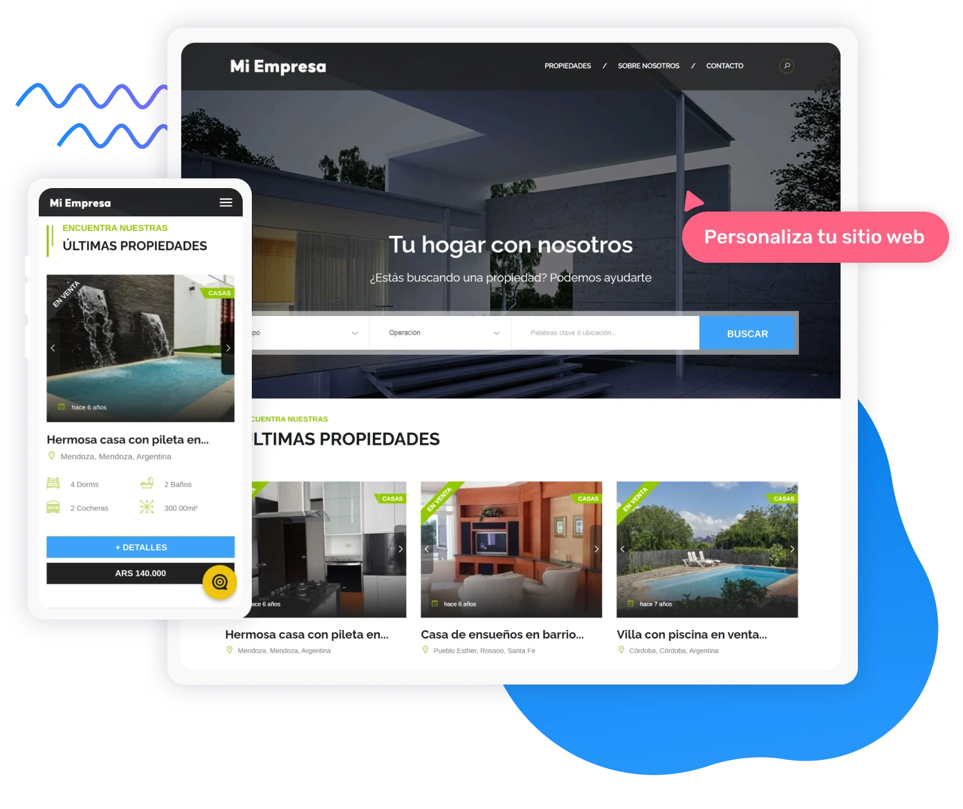 Crea un sitio web inmobiliario completamente personalizado y optimizado para todos los dispositivos. Sincroniza en tiempo real tu inventario de propiedades desde KiteProp, garantizando una actualización constante.