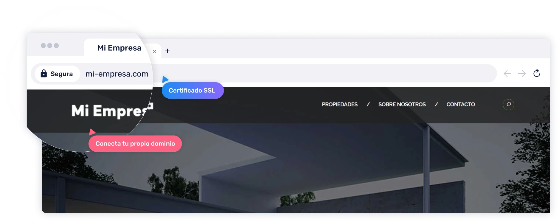 Podrás conectar fácilmente un dominio propio a tu sitio web, y además te proporcionaremos un certificado SSL gratuito para garantizar que cumpla con los estándares de seguridad necesarios, protegiendo la información de tus visitantes.